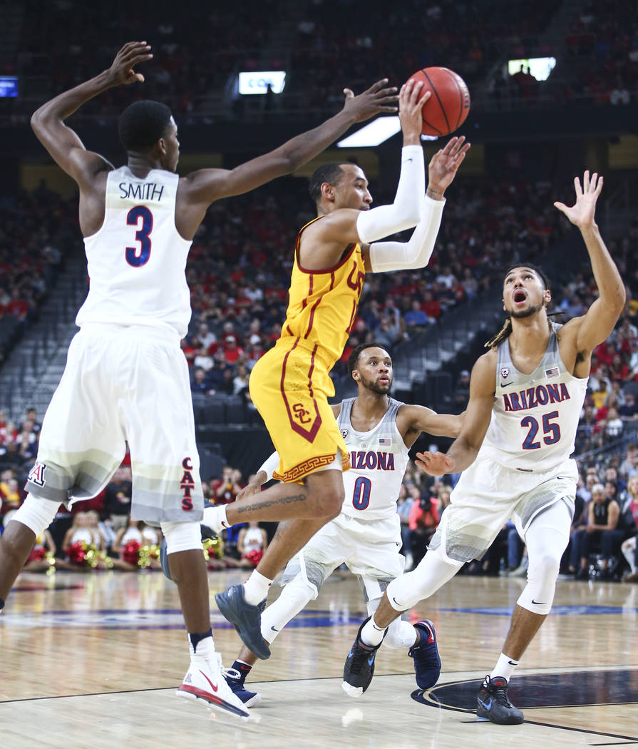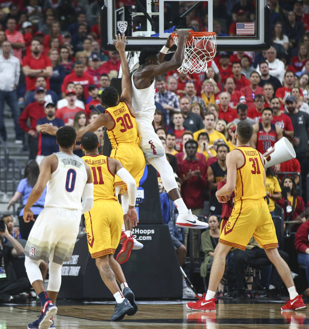 Alkins flexed his muscles and stepped over the USC defender as the pro-Arizona crowd at T-Mobile Arena went into a frenzy. The No. 1-seeded Wildcats fed off the energy and defeated the second-seeded Trojans 75-61 to clinch an automatic bid into the NCAA Tournament.