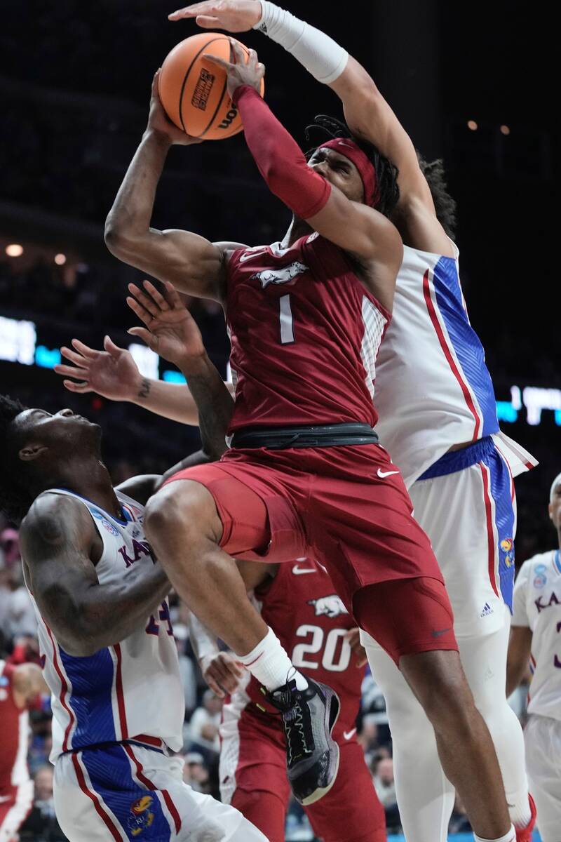 Key stat: Arkansas outrebounded Kansas 36-29 .