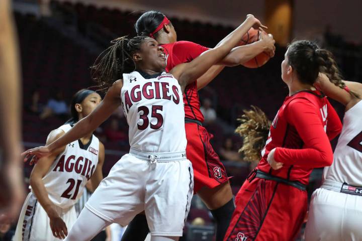 New Mexico State won its third straight Western Athletic Conference basketball tournament championship with a 63-48 victory over Seattle on Saturday at Orleans Arena.
