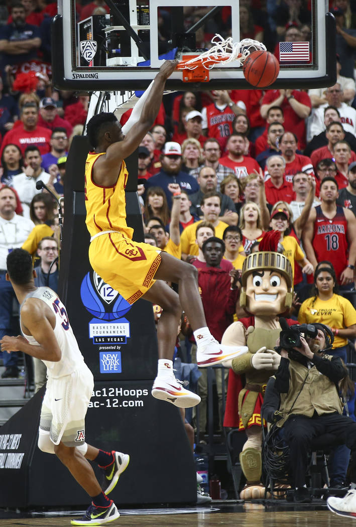 USC Trojans forward Chimezie Metu (4) dunks against the Arizona Wildcats during the Pac-12 tournament championship basketball game at T-Mobile Arena in Las Vegas on Saturday, March 10, 2018. Chase Stevens Las Vegas Review-Journal @csstevensphoto
