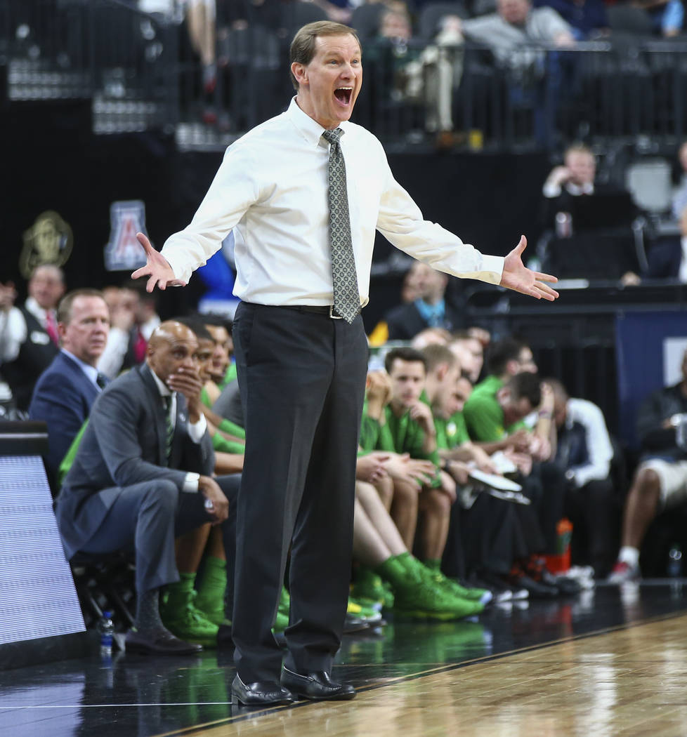 Oregon Ducks head coach Dana Altman reacts as his team plays the Utah Utes during the Pac-12 basketball tournament at T-Mobile Arena in Las Vegas on Thursday, March 8, 2018. Chase Stevens Las Vegas Review-Journal @csstevensphoto