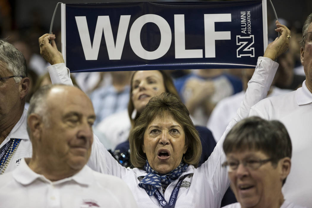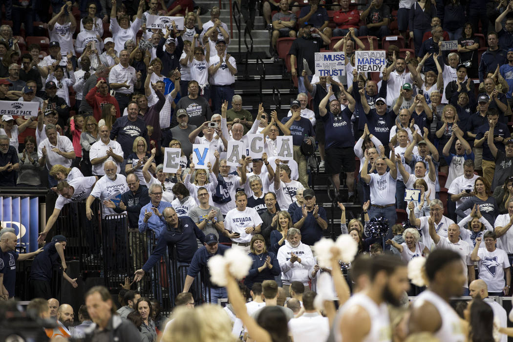 Fans celebrate a win by Nevada Wolf Pack over UNLV Rebels in the Mountain West Conference men's basketball tournament at the Thomas & Mack Center in Las Vegas, Thursday, March 8, 2018. Nevada won 79-74. Erik Verduzco Las Vegas Review-Journal @Erik_Verduzco