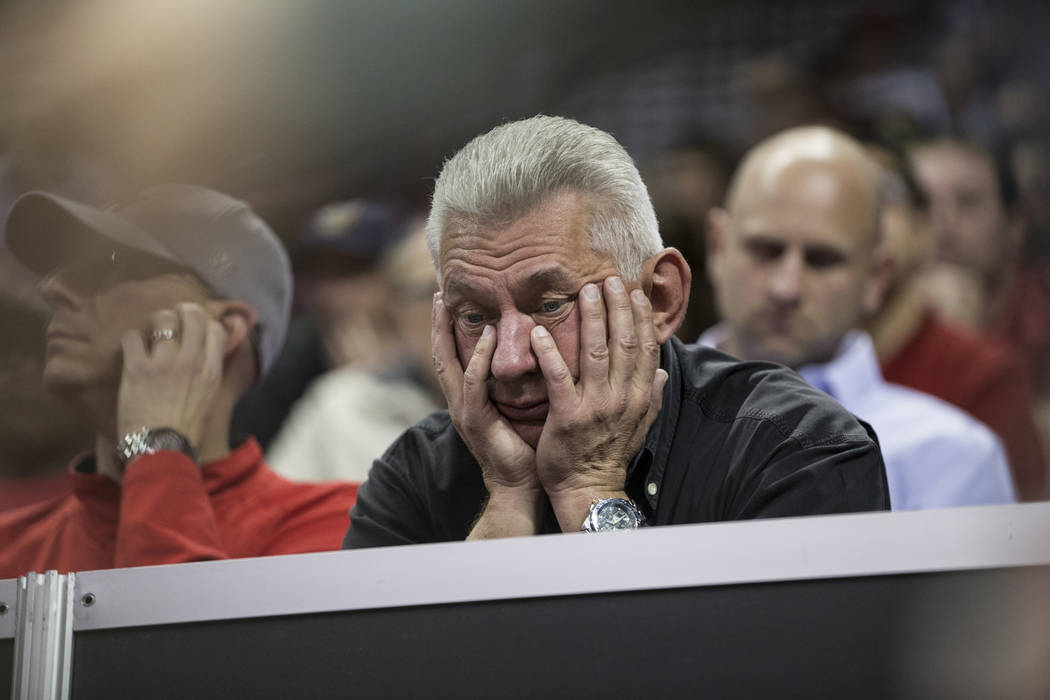 An UNLV fans watches the second half of the Mountain West Conference men's basketball tournament game against Nevada Wolf Pack at the Thomas & Mack Center in Las Vegas, Thursday, March 8, 2018. Nevada won 79-74. Erik Verduzco Las Vegas Review-Journal @Erik_Verduzco