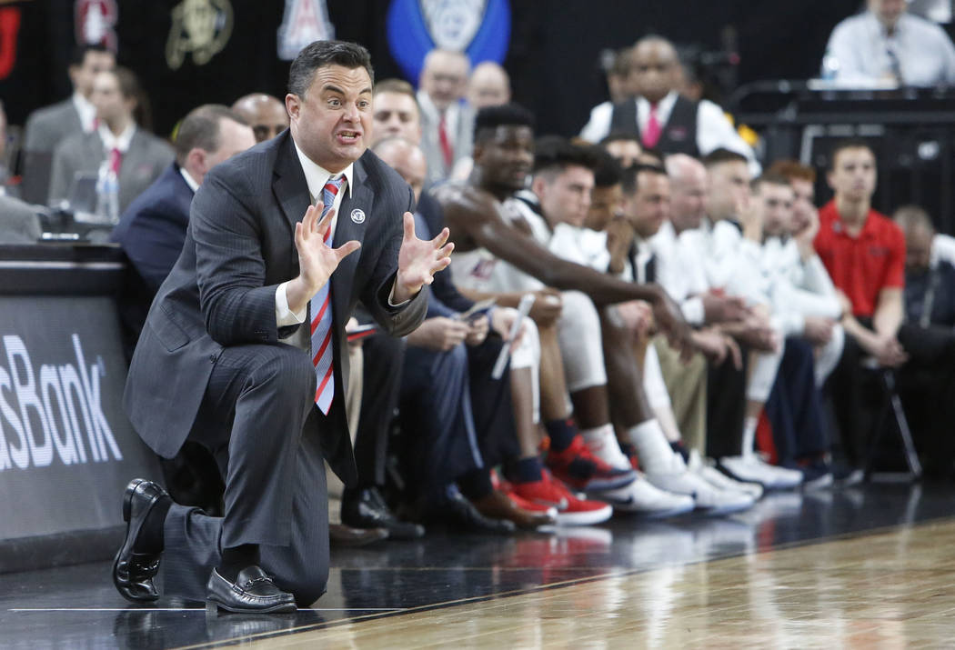 Arizona Wildcats Sean Miller directs his players during an NCAA college basketball game against Colorado Buffaloes in the quarter final of the Pac-12 tournament on Thursday, March 8, 2018, in Las Vegas. Arizona won 83-57. Bizuayehu Tesfaye/Las Vegas Review-Journal @bizutesfaye