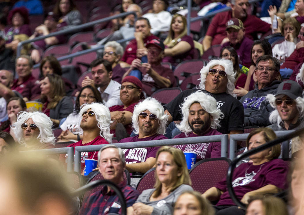 Aggies fans don white wigs during the second half of a WAC quarterfinal game at the Orleans Arena on Thursday, March 8, 2018. New Mexico won 97-70. Patrick Connolly Las Vegas Review-Journal @PConnPie