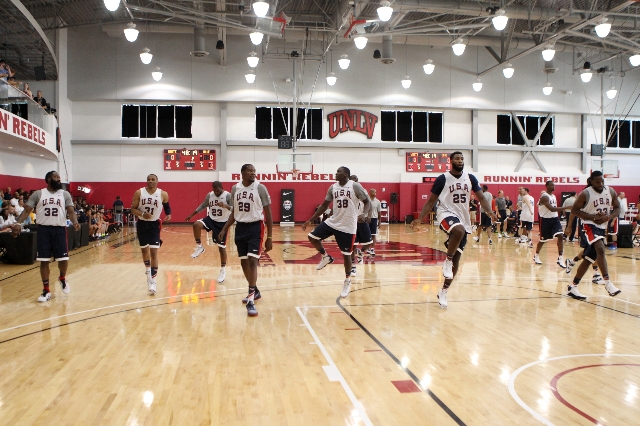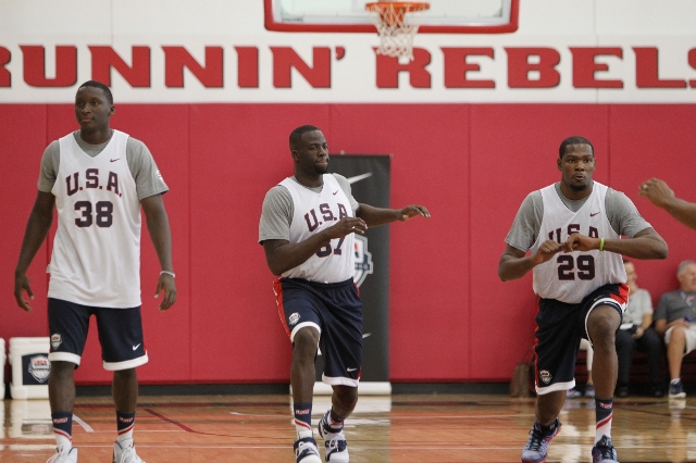* NOTES — LeBron James, Chandler Parsons and Paul George were the only players missing among the 34 scheduled to be on the floor Tuesday. James and Parsons were excused because of a prior engagement and both are expected at practice today. George was with the team Monday at Wynn Las Vegas and was given permission to return to Indianapolis to fulfill a commitment for the Pacers. "They're fine and in good standing," Colangelo said. "No problem." ... Today's workout at the Mendenhall Center will be shorter than Tuesday's — probably an hour — as the minicamp adheres to its strict no-contact environment. The practice is closed to the public.