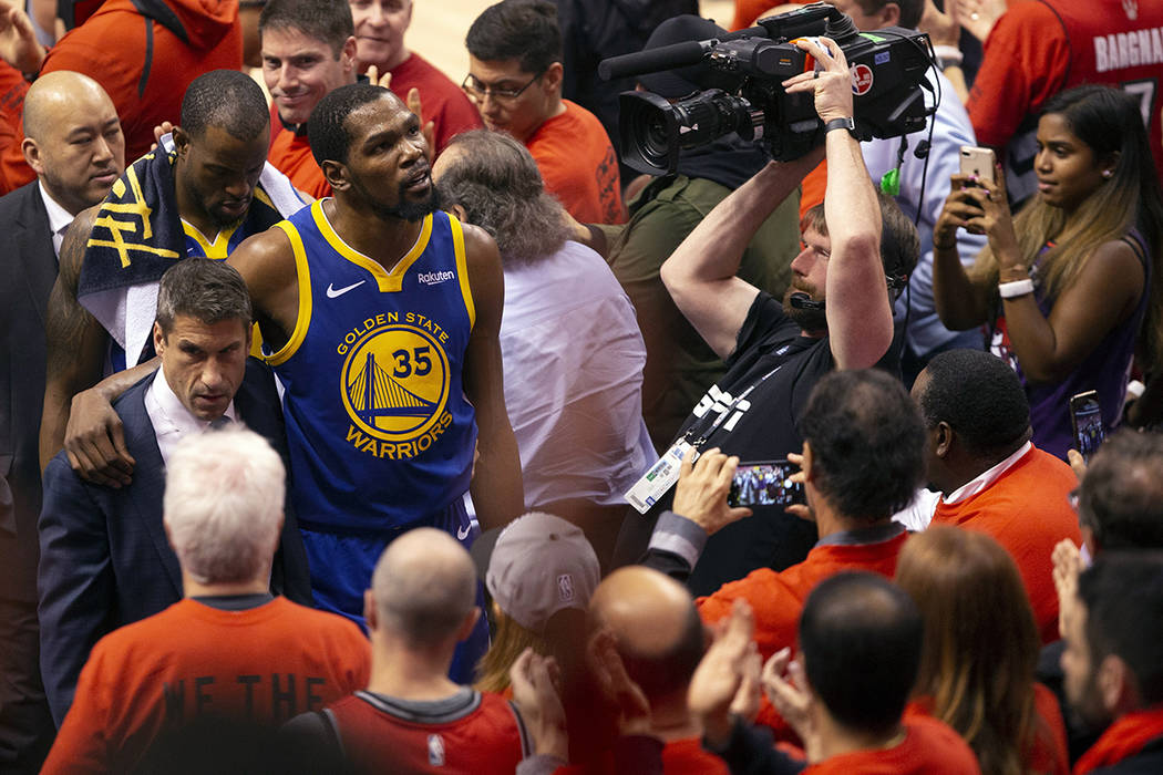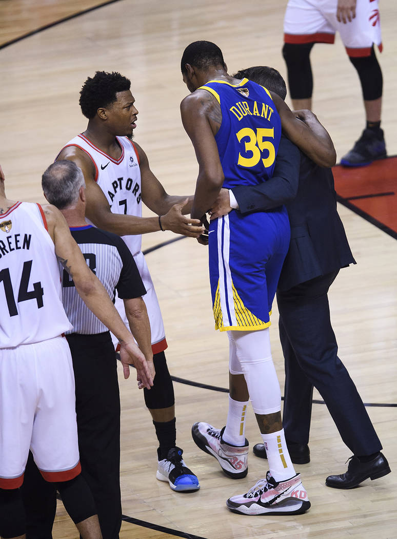 The two-time reigning NBA Finals MVP was injured Monday night in the second quarter of Golden State’s 106-105 victory that forced a Game 6 at Oracle Arena on Thursday. The Raptors lead the best-of-seven series 3-2.