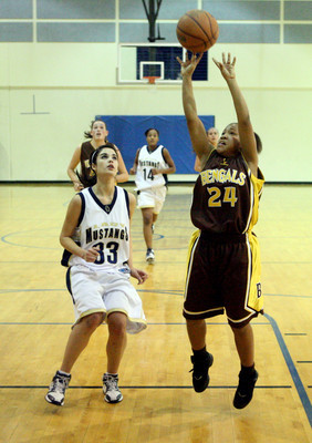 Shadow Ridge rallied behind a strong transition game and whittled the deficit to 32-31 in the first minute of the fourth quarter. The Mustangs scored seven of eight baskets in transition as Bonanza had trouble trying to match Shadow Ridge's speed.