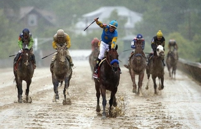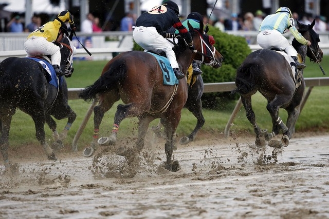 The race was held on a sodden track after a thunderstorm passed overhead just before the start in Maryland.
