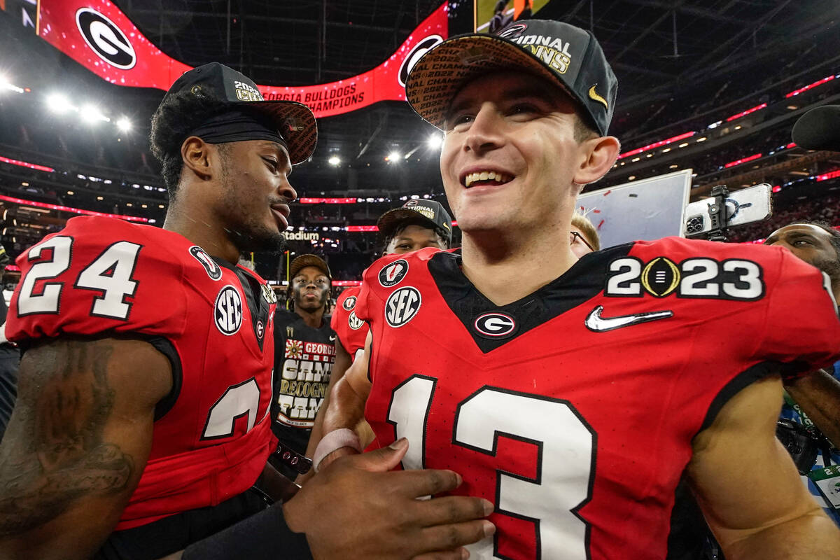 7:23 p.m.: Stetson Bennett gets a curtain call. He finishes 18-for-25 for 304 yards and four passing touchdowns along with 39 yards and two scores rushing.