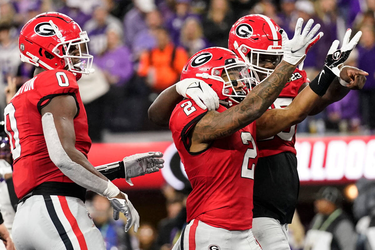5:22 p.m.: Ladd McConkey is wide open after a busted coverage in the TCU secondary and snags the 37-yard touchdown pass from Stetson Bennett. The Bulldogs are carving up the TCU defense. It’s 17-7 Georgia with 2:43 left in the first quarter. Georgia is -1400 on the live line (TCU +800), spread -20½, total 71½.