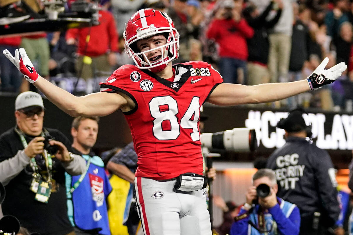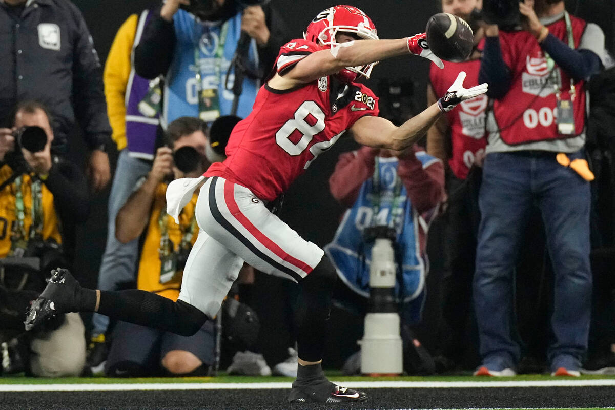Georgia props: Stetson Bennett under 21½ completions (18), longest completion under 46½ yards (37), over 2 TD passes (4), will throw an interception (no -120), over 15½ rushing yards (39); Daijun Edwards under 50½ rushing yards (30), will score a TD (no -140); Kenny McIntosh under 65½ rushing yards (50), under 31½ receiving yards (-1), will score a TD (no +140); Brock Bowers over 67½ receiving yards (152), will score a TD (yes -145); Arian Smith under 32½ receiving yards (3), will score a TD (no -330); Marcus Rosemy-Jacksaint under 26½ receiving yards (0); Ladd McConkey over 36½ receiving yards (88).