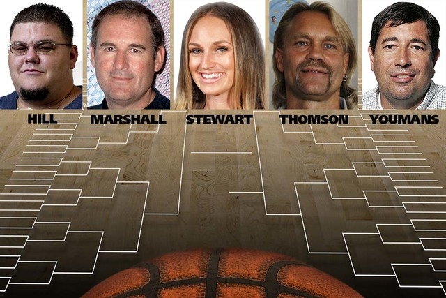 The Review-Journal’s Adam Hill, Kelly Stewart and Matt Youmans compete with handicappers Bruce Marshall and Ken Thomson in a contest covering NCAA Tournament games today and Friday. Each contestant selects 12 games against the spread, sides or totals, choosing from the 32 games on the betting board. Eleven of the picks are worth one point, and a Best Bet counts for two points. Any push is worth a half-point. Contest plays will appear again Saturday and Thursday, March 26. The national champion pick is the tiebreaker.