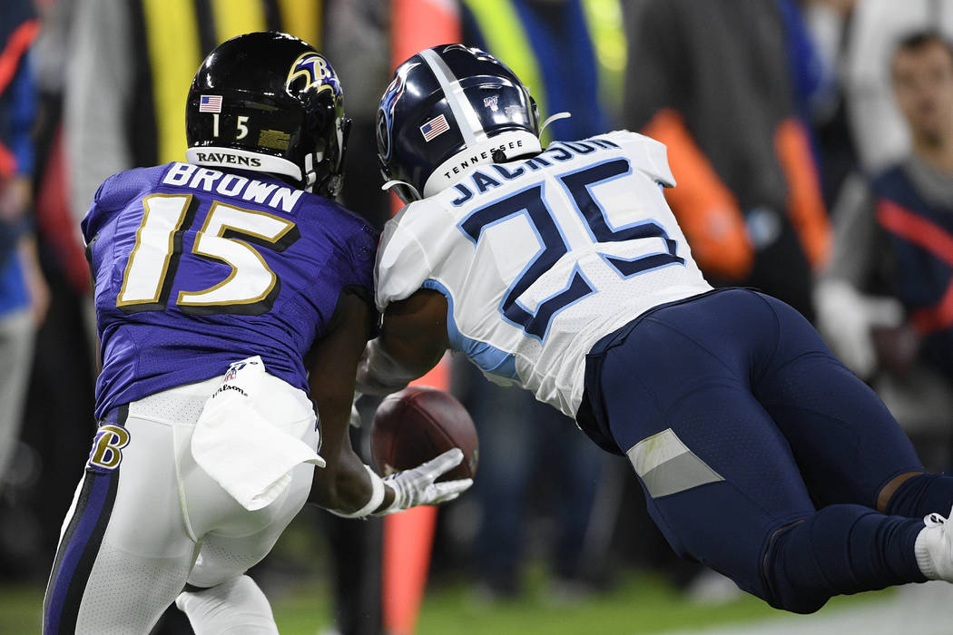 7:20 p.m.: Jackson is stripped, Titans recover, and all the money-line parlays tied to Baltimore are about to go in the trash.