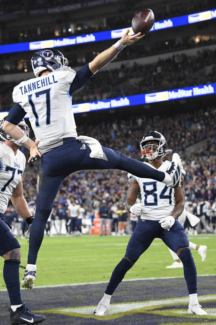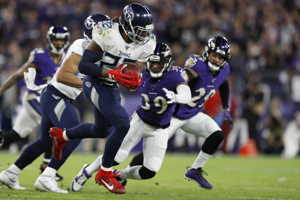 7:45 p.m.: Some decided player props: Henry over 94½ rushing yards (173 and counting); Tannehill over 1½ TD passes (+140 odds); Lamar Jackson over 75½ rushing yards (87).