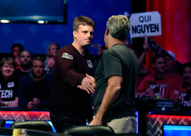 Nguyen knocked out two players Monday and has accumulated 197.6 million chips, more than his remaining two opponents combined.