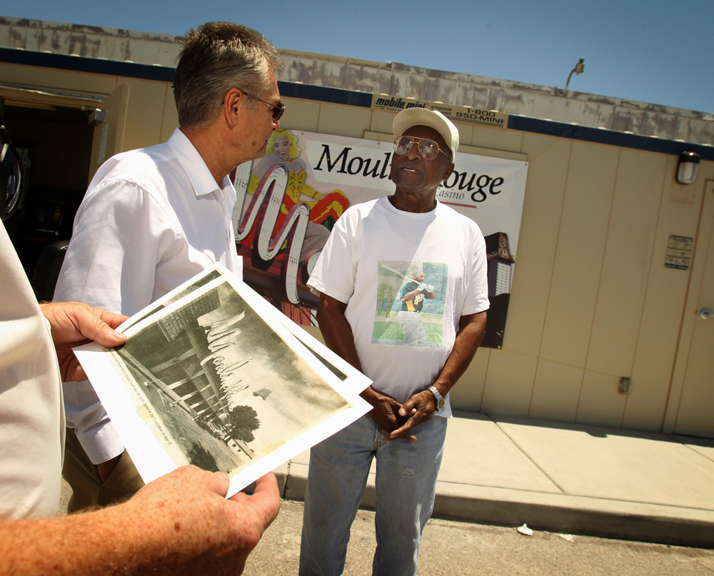 The Moulin Rouge in 1955 opened as Las Vegas' first racially integrated casino. It closed shortly thereafter and was used for various purposes until two fires, one in 2003 and one in 2009, destroyed much of the property. Its historic sign was carted off to the Neon Museum and now the Moulin Rouge is just a vacant lot.