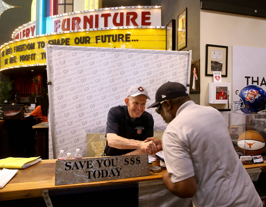 “We were just about to go out of business, and I took the last money I had and bet the entire company on television advertising,” Mack said. “I kept stuttering and stammering and couldn’t come up with a punchline. Out of sheer frustration, I had the day’s receipts in my pocket and I pulled them out and said, ‘Gallery Furniture will save you money.’