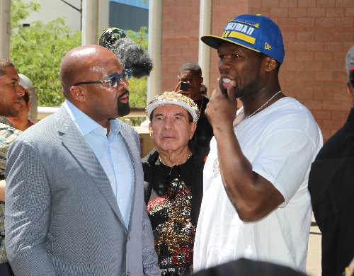 Inside the courtroom, the crowded wooden benches included news reporters and Mayweather supporters, including rapper Curtis "50 Cent" Jackson and the boxer's cut man, Rafael Garcia.