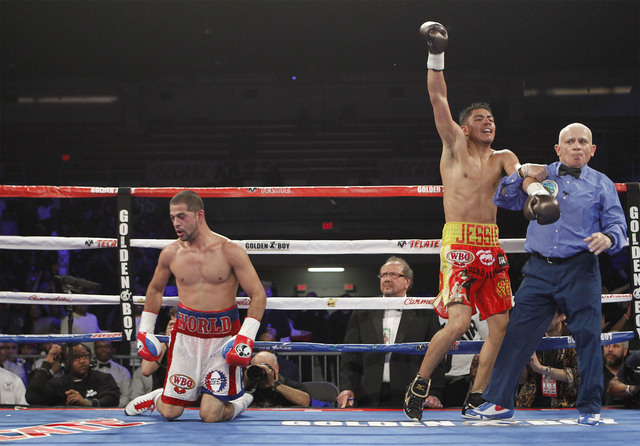 Jessie Vargas of Las Vegas knocked down Sadam Ali of Brooklyn three times and stopped him at 2:09 of the ninth round Saturday to win the WBO welterweight title in Washington, D.C.