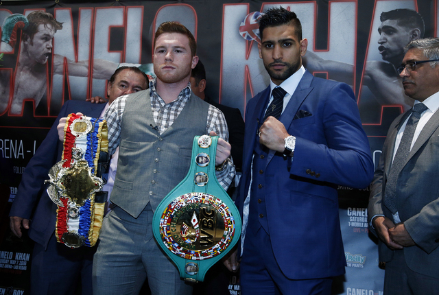 Three straight days of travel would cause anyone to lose a little weight, not to mention sleep. And weight was a big topic of discussion Wednesday for Saul “Canelo” Alvarez and Amir Khan, who will meet at a catch weight of 155 pounds May 7 in the first boxing event at T-Mobile Arena.