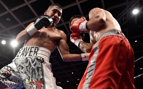 Alexis Santiago and Erik Ruiz battled in a bantamweight fight Tuesday at Sam’s Town. Santiago won by unanimous decision to improve to 21-3-1.