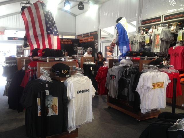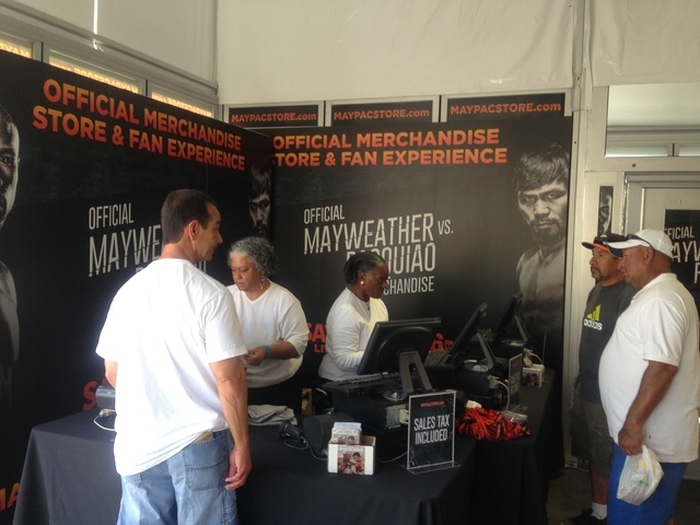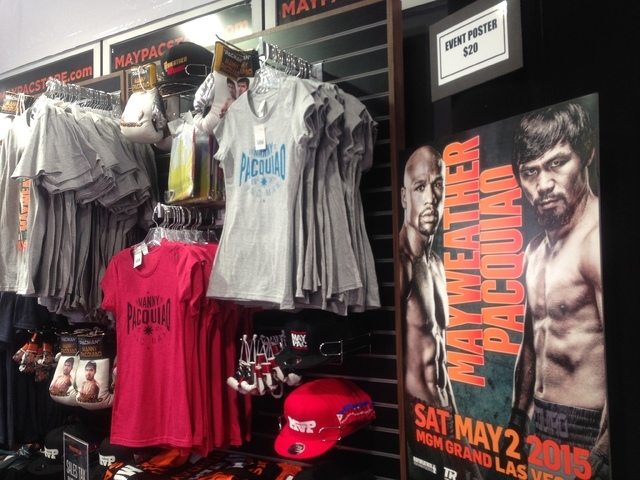 Posters, T-shirts, caps, boxing gloves, jackets and art work are going for $20 to $10,000 at the MayPacStore as megafight mania for the Floyd Mayweather Jr.-Manny Pacquiao showdown at MGM Grand Garden arena begins in Las Vegas. The store is staying open until midnight Friday and will be open noon-midnight Saturday and Sunday and noon-10 p.m. during the week.