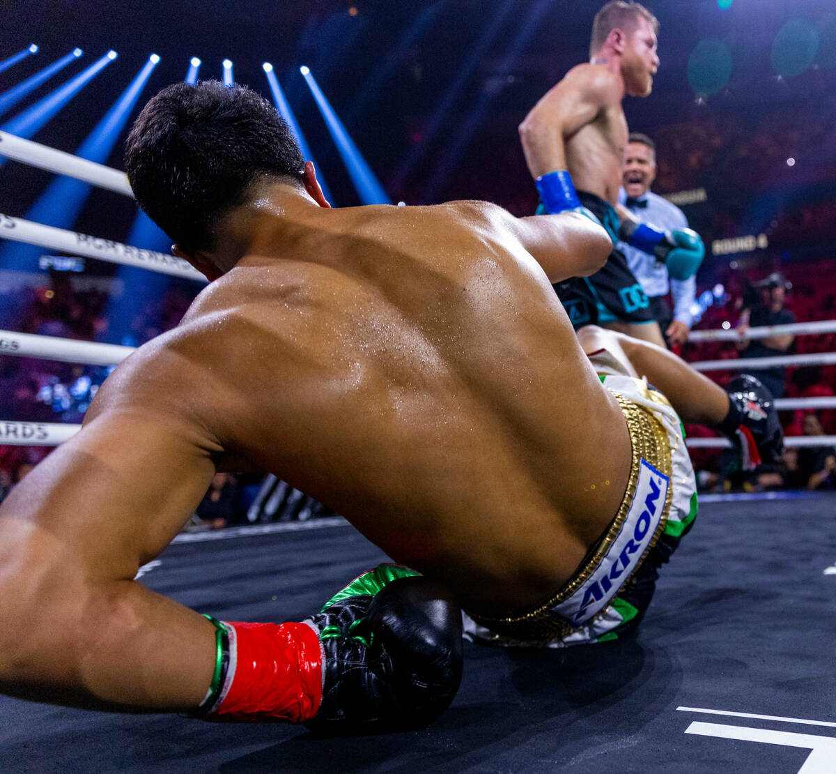 ‘Proud’ Canelo Alvarez retains titles, hands challenger 1st loss — PHOTOS
