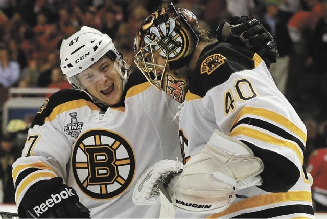 The game didn’t start like this, with the Blackhawks looking refreshed during a dominant first period. The Bruins looked tired and slow, except for Rask, and that was enough to keep them in the game. Rask turned away two shots by Patrick Kane during a strong rush 8 1/2 minutes in the game. Michal Rozsival then threw it at the net and the long rebound went out to Sharp, who shot it past Rask while the goaltender contended with a pile of bodies in front of the net.