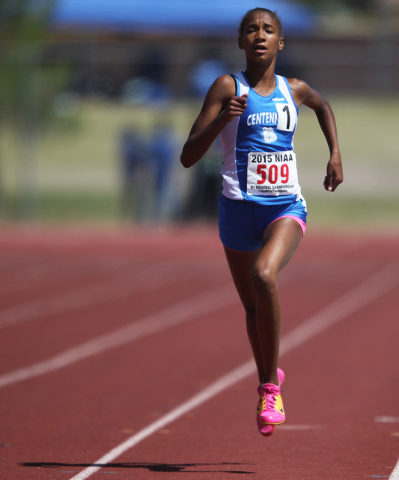 Centennial’s Karina Haymore won the 400 (56.98) and 800 (2:16.48) and ran anchor on the winning 1,600 relay team.