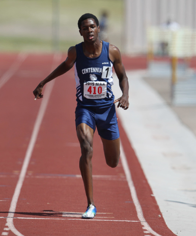 Centennial senior Anyah Nutter won both Sunset hurdles, taking the 110 (15.01) and the 300 (39.27). He also ran on the winning 800-meter relay team and was first in the high jump (6-4).