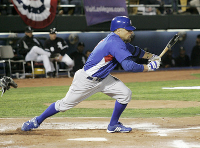 A career .284 hitter in 719 games in the past six seasons, Johnson joined the Cubs late last spring, two days after the Toronto Blue Jays released him. In his first spring game with Chicago, he hit Jarrod Washburn's second pitch for a leadoff home run in the Cubs' 4-2 victory over the Seattle Mariners at Cashman Field on March 29.