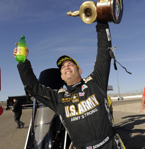 Las Vegas has been a friendly track for Schumacher, who has won more professional titles here than any other driver and took home the spring title last year. Sunday’s victory broke the tie with Greg Anderson in Pro Stock.