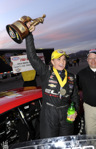 Enders-Stevens, a 30-year-old who lives in New Orleans, also finds Las Vegas a favorable place after going back to back this weekend. Winning the Pro Stock race from the third qualifying position also placed her atop the season standings.