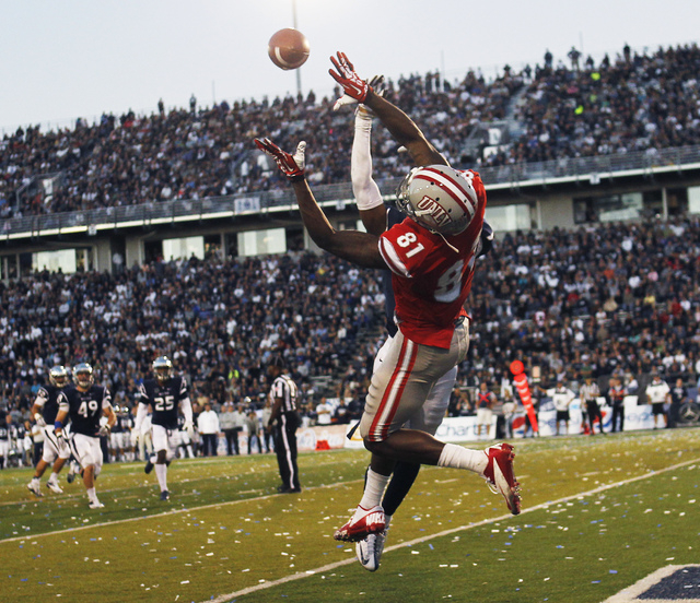 He was an integral part of that success, catching 87 passes for 1,290 yards and a school-record 14 touchdowns. The receptions total was just one off UNLV’s record shared by Ryan Wolfe in 2008 and Randy Gatewood in 1994, and the yardage total was second to Jim Sandusky’s 1,346 in 1981.
