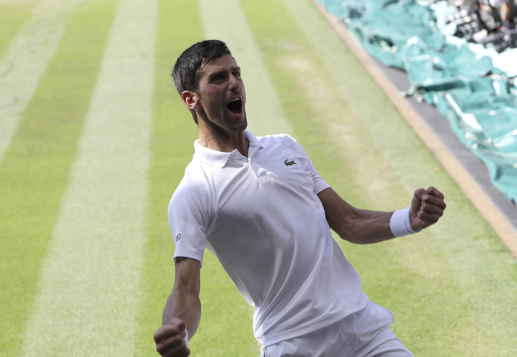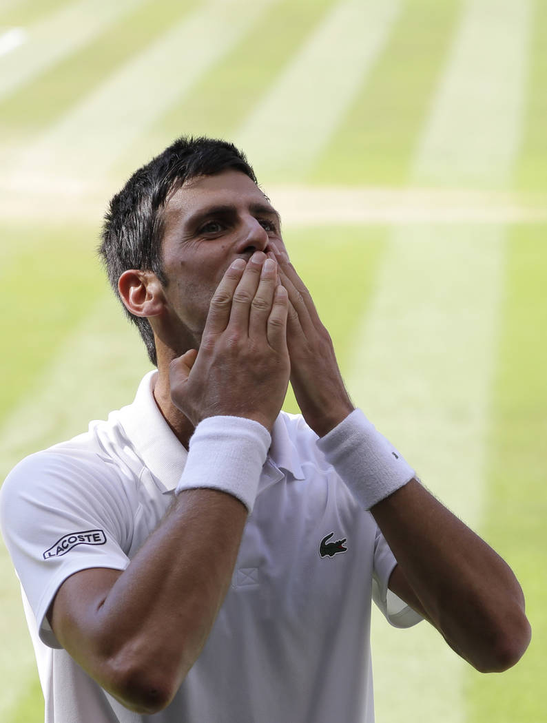 When Anderson pushed a forehand return into the net to end it, Djokovic exhaled. After they shook hands, Djokovic performed his ritual of bending down to grab a couple of blades of grass and plopping them in his mouth, savoring the triumph.