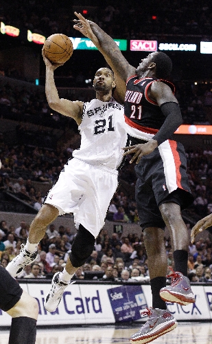 Tim Duncan scored 18 points in what might have been his last game before the playoffs start this weekend, now that the Spurs have clinched the top spot in the Western Conference after beating the Portland Trail Blazers 124-89 on Monday.