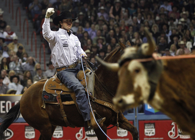 Corkill, 26, captured his team roping heeler crown in dramatic fashion — winning the final round of the NFR to edge Gardnerville resident Clay O’Brien Cooper by $1,131 — and is poised to become Nevada’s only two-time world champion this year despite injuring his left hand in the first go-round of the NFR at the Thomas &Mack Center.