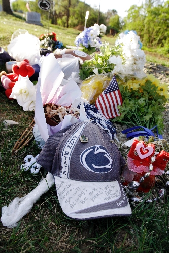 The small cemetery in State College where Paterno is buried has seen increased visitors since his death. Many well-wishers have left flowers there, too, and Penn State hats.