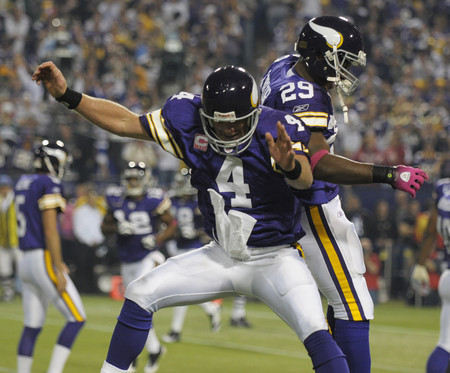"You don't want your quarterback crying coming out of the locker room," Vikings coach Brad Childress said. "He was great."