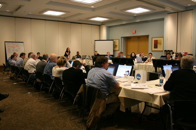 The room was set up virtually identical to the one the real committee uses. Everyone had a laptop. There were three large computer screens, which provided updated information such as "Team Sheets" -- the program's entire resume.