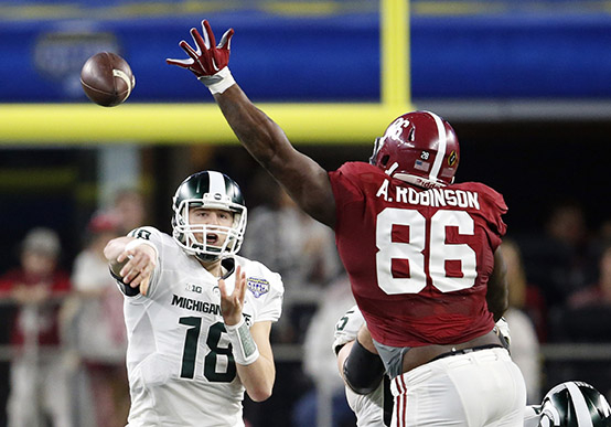 Unlike the Tide, the Big Ten champ Spartans (12-2) weren’t able to figure anything out when they had the ball. Michigan State quarterback Connor Cook was under constant duress, and the running game was nonexistent.