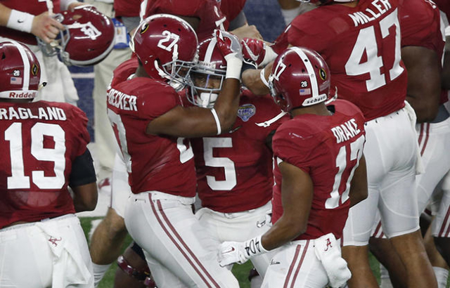 The Crimson Tide (13-1) will face No. 1 Clemson (14-0) for the national title on Jan. 11 in Glendale, Ariz. The Tigers took care of Oklahoma 37-17 in the earlier semifinal Thursday.