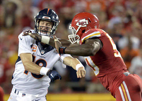 NOTES: Broncos QB Peyton Manning, second on the NFL's all-time passing yards list behind Brett Favre (71,838), joined the 70,000-yard club in the fourth quarter. ... Chiefs FS Eric Berry, 26 and a three-time Pro Bowl selection, returned to the starting lineup for the first time since 2013. He missed all of last season to be treated for Hodgkin lymphoma. ... Chiefs OT Eric Fisher, the No. 1 overall pick in 2013 who lost his starting job at left tackle, did not start but saw action one week after being one of the team's seven inactives at Houston. He entered when LT Donald Stephenson left temporarily in the second half with a leg injury.