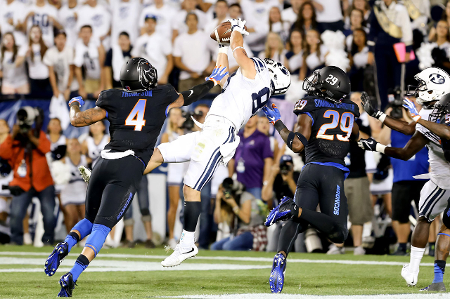 NOTES: BYU had minus-14 yards rushing on 19 carries in the first half. ... Tanner Mangum's 84-yard touchdown pass to Mitchell Jurgens was the fifth longest pass play in BYU history and the longest TD pass for the Cougars since 1996. ... Boise State entered the game with an all-time record of 92-11 (.819) as a Top 25 team. The Broncos have also won at least 10 games eight times in the last nine seasons.