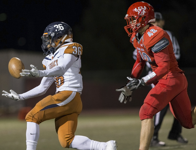 Longhorns running back Samuel Turner was stuffed on second-and-goal from the 1, and Stevenson stayed home on the reverse on third down and wrapped up Evans for a loss. On fourth down, Legacy quarterback Roberto Valenzuela bobbled the low snap and was tackled for a 7-yard loss.