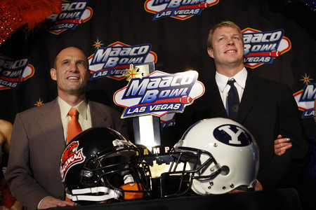 Mendenhall was part of Thursday's news conference to promote the MAACO Bowl Las Vegas. No. 15 BYU (10-2) plays No. 16 Oregon State (8-4) on Dec. 22 at Sam Boyd Stadium.