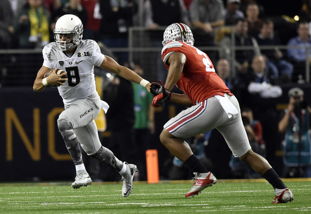 Of teams in the top 10 picks, the Buccaneers, Titans (second overall), Redskins (fifth), Jets (sixth) and Bears (seventh) are reportedly considering a quarterback. The Eagles could take a quarterback, but coach Chip Kelly said last week the rampant reports of Philadelphia moving up from the 20th overall selection to grab Mariota, who was recruited by Kelly and played for him at Oregon, were without merit.