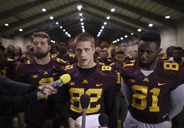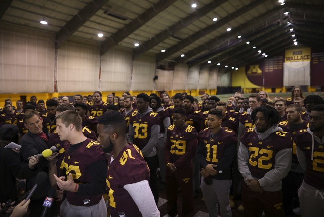 The players made the announcement at a news conference Saturday after a group of seniors from the team met with the board of regents, university President Eric Kaler and athletic director Mark Coyle on Friday night.