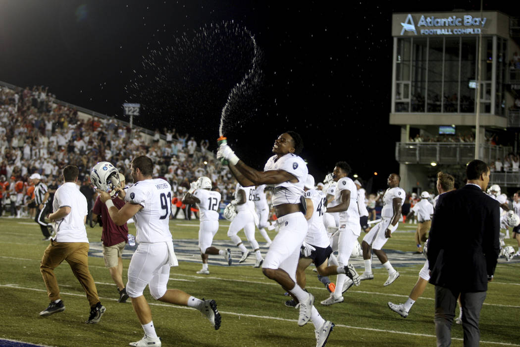 Jeremy Cox’s 40-yard touchdown run with 1:34 remaining sealed the biggest win in program history. After the game, the ODU faithful stormed the field.